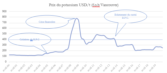 Ce travail est la traduction résumée d’un mémoire de master intitulé "Geopolitics of chemical fertilizers : the cartelised market structure of the potassium industry" soutenu en septembre 2019 à l’ESCP sous la direction du professeur Alain Chevalier, rédigé par Rémi Blémont. La présente fiche suit la structure du mémoire, en reprend les éléments clefs et indique certaines des sources.