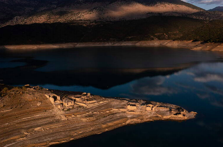 "Une église, une école et des maisons sorties des eaux. Les riverains du lac de Mornos, sur l’île de Kallio en Grèce, ont pu observer qu’un village sacrifié et englouti sous les eaux à la fin des années 70 avait refait surface."